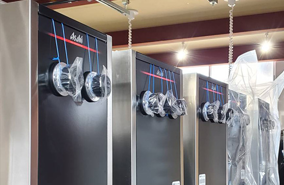 飲食店の閉店後や新規オープンする店舗にて再利用するビールサーバーの修理や洗浄清掃を行い、再出荷をしています。また、自動販売機についても修理、板金塗装といったリニューアルの他に、シートラッピング加工といった特殊作業も対応可能です。